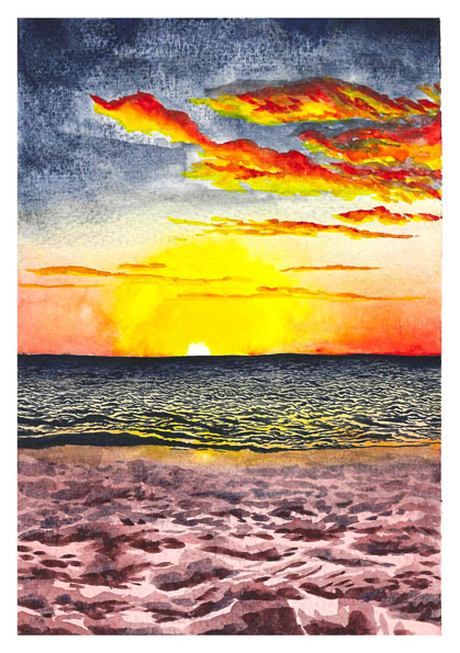 A5 Tasmanian Farm Hills Watercolour Painting Print